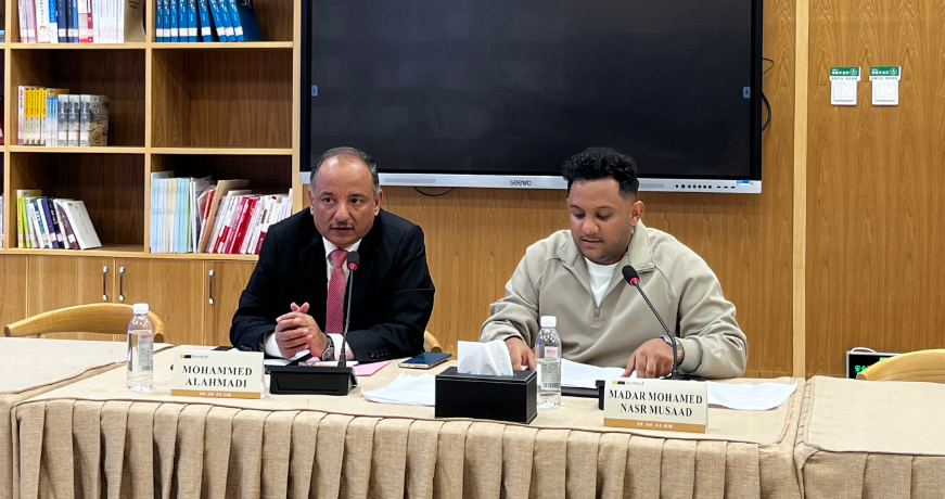 11月10日,也门驻华大使馆文化参赞默罕默德·艾哈迈迪(MOHAMMED AL-AHMADI)先生访问我校。国际教育学院副院长(主持工作)魏建华、副书记(主持工作)张华辉和招生拓展办副主任姚涵,以及国际处专聘副处长原炜珂、项目专员宋碧澄热情接待参赞一行。