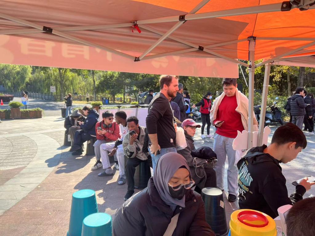 作为校内定期开展的公益活动,本学期雷锋连无偿献血活动已顺利举办两次,国际学子踊跃参与,累计献血人次超 80 人次。来自世界各地的学生们,在医护人员的指导下有序完成登记、体检、献血流程,成为校园里传递温暖的主力军。