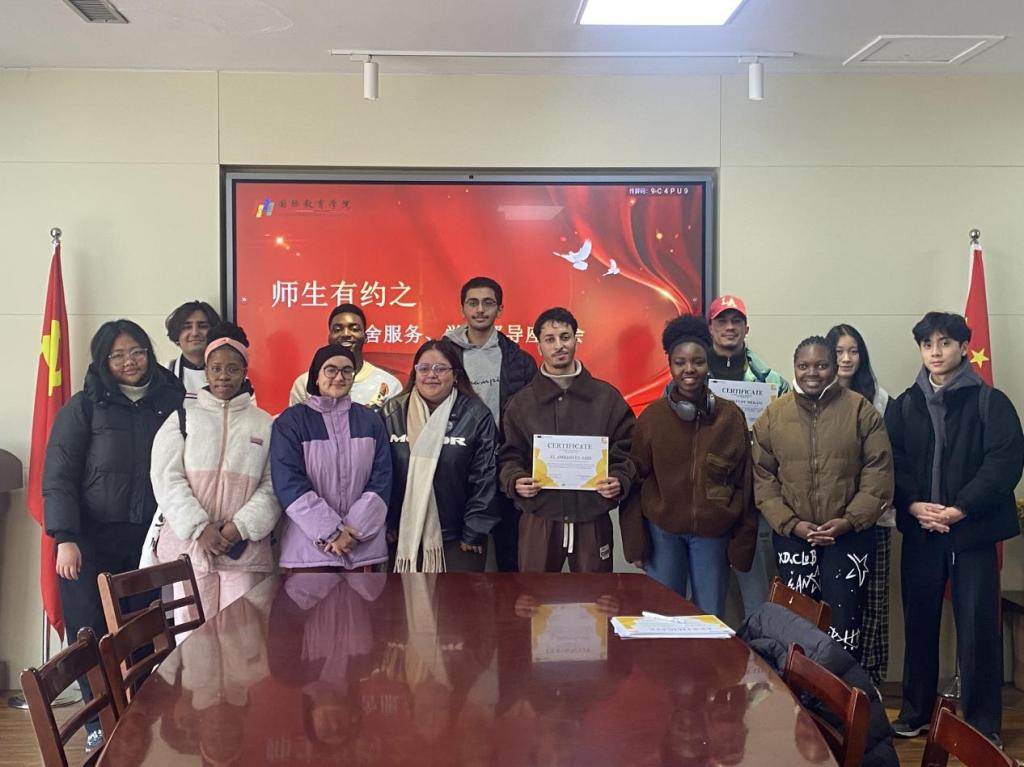12月25日,国际教育学院宿舍协管与学风督导座谈会在学院407会议室顺利召开。学院副书记朱李建、国际学生宿舍协管队和学风督导队指导教师姜晓欢、唐欢,以及宿舍协管队和学风督导队代表齐聚一堂,共话工作初心,共绘未来蓝图。