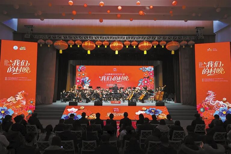 活动当天,同学们在村文化礼堂欣赏了一场别开生面的新春交响音乐会。演出巧妙融汇中西经典,既有《春之声圆舞曲》的优雅旋律,也有《云宫迅音》的奇幻乐章;既有《如愿》等流行曲目的时代共鸣,更以二胡协奏《战马奔腾》展现民族乐器与交响乐队的激情对话。大家与现场观众一同沉浸在音乐之中,通过旋律互动感受情感联结,聆听中国新时代的文艺脉搏。