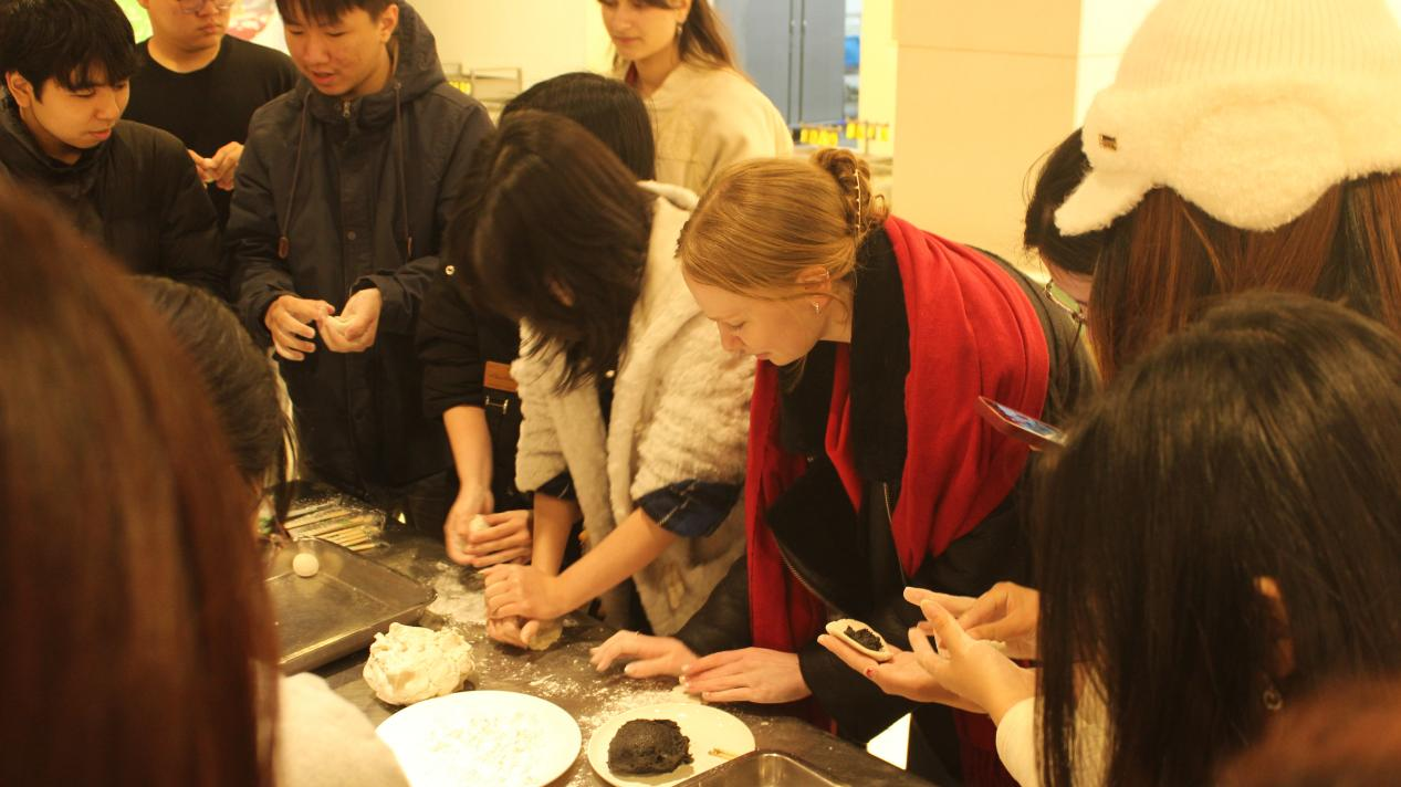 At the event venue, long tables were neatly arranged, with glutinous rice flour, black sesame filling, colored glutinous rice paper and other materials readily available. Chinese students taught international students how to make glutinous rice balls step by step, from rolling dough into balls to wrapping fillings, with great patience and meticulousness. Soon, bowls of steaming glutinous rice balls were served. Everyone sat around to taste them, and the sweet and chewy texture embodied the beautiful implication of "reunion".
